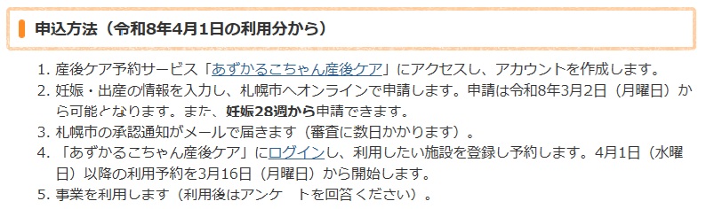 ※札幌市在住(住民票のある方)で、日帰り、宿泊型と違い、利用対象者は。一歳未満の乳児と母親です。