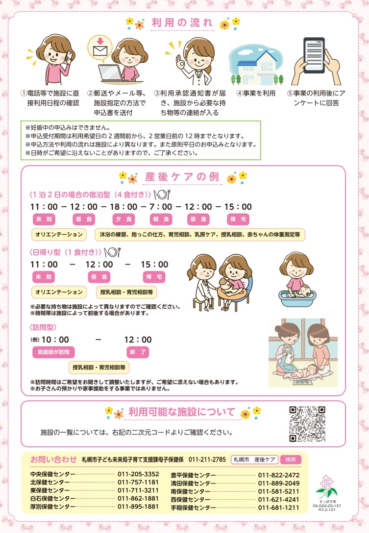 ※料金は、2,500円(札幌市産後ケア事業利用の場合のみ)PDF
