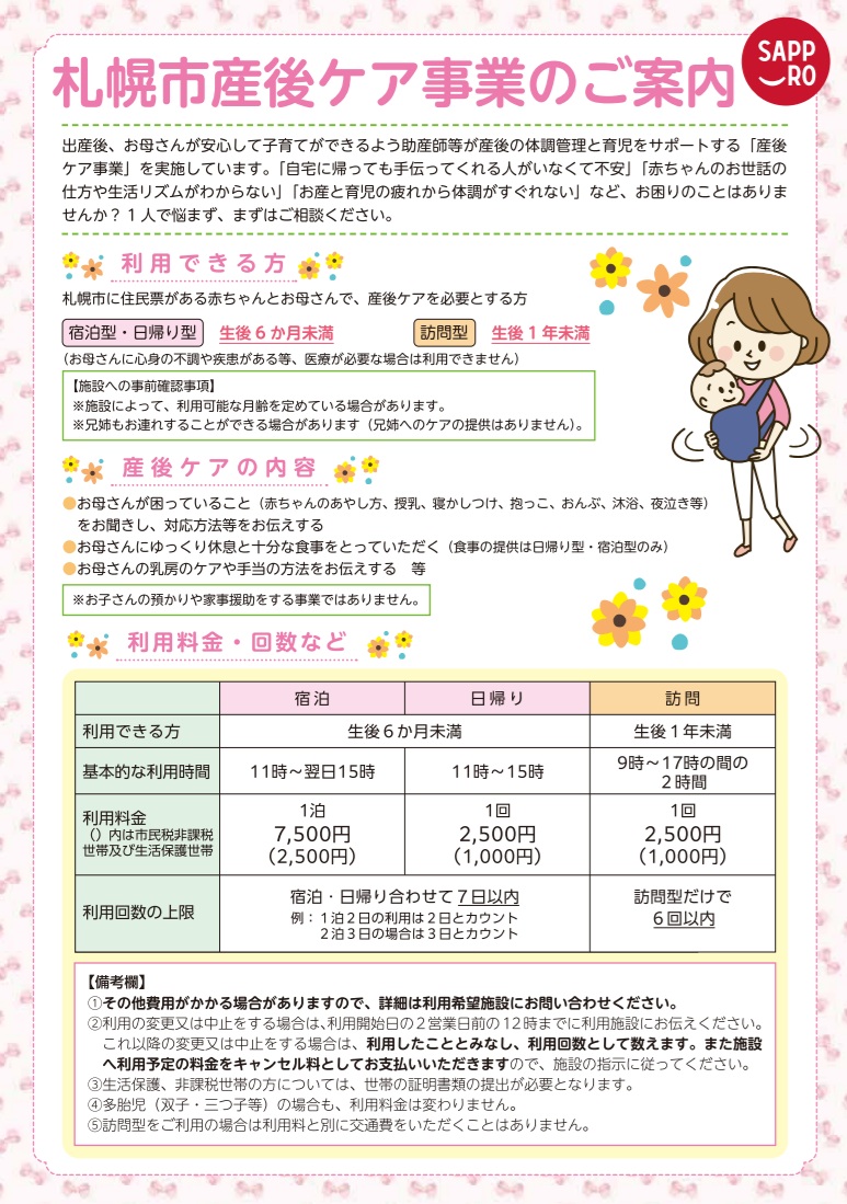 ※料金は、2,500円(札幌市産後ケア事業利用の場合のみ)PDF